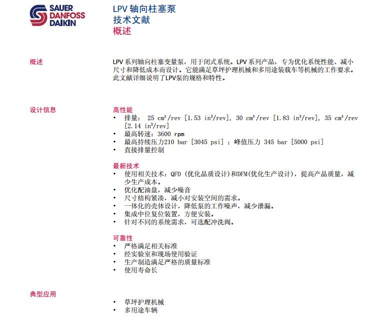 LPV 闭式 轴向柱塞泵