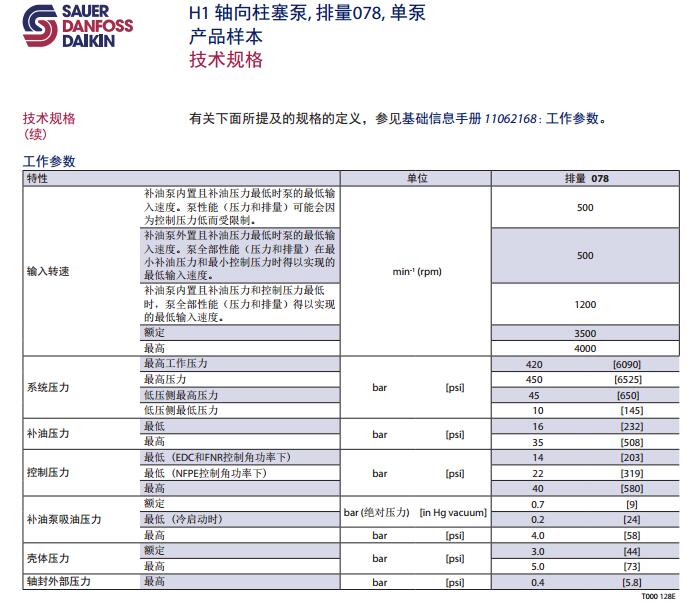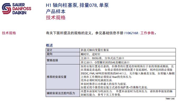 H1 轴向柱塞泵, 排量078, 单泵